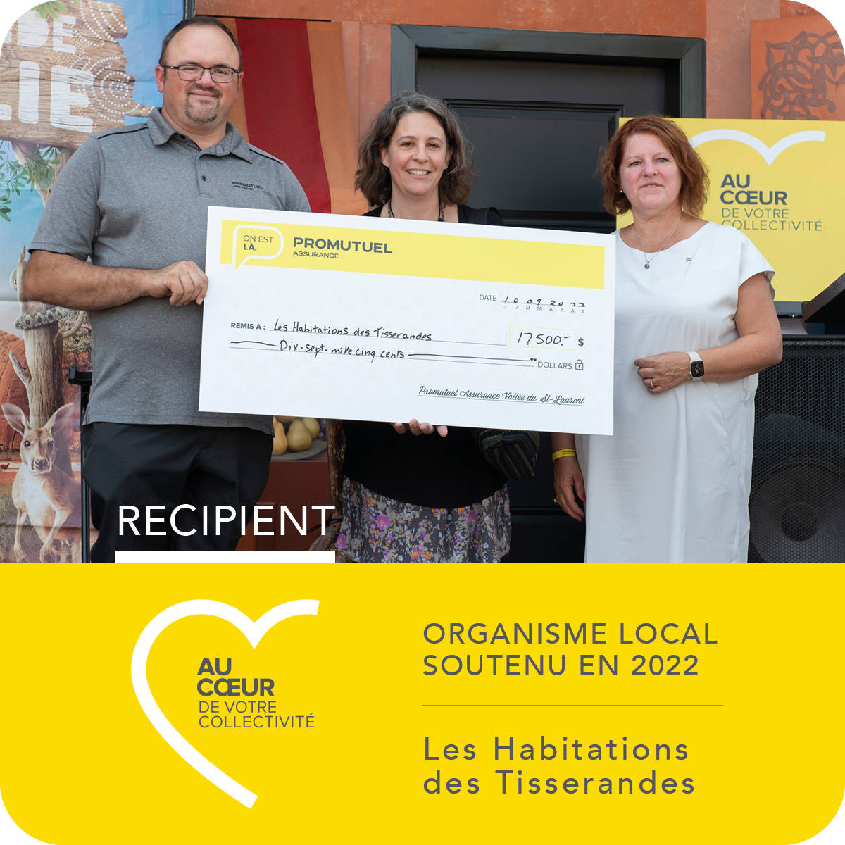 Les Habitations des Tisserandes will use the donation it received through the At the Heart of Your Community program to support the RCM of Haut-Saint-Laurent’s housing accessibility project. The donation will help provide housing to people in unique situations.