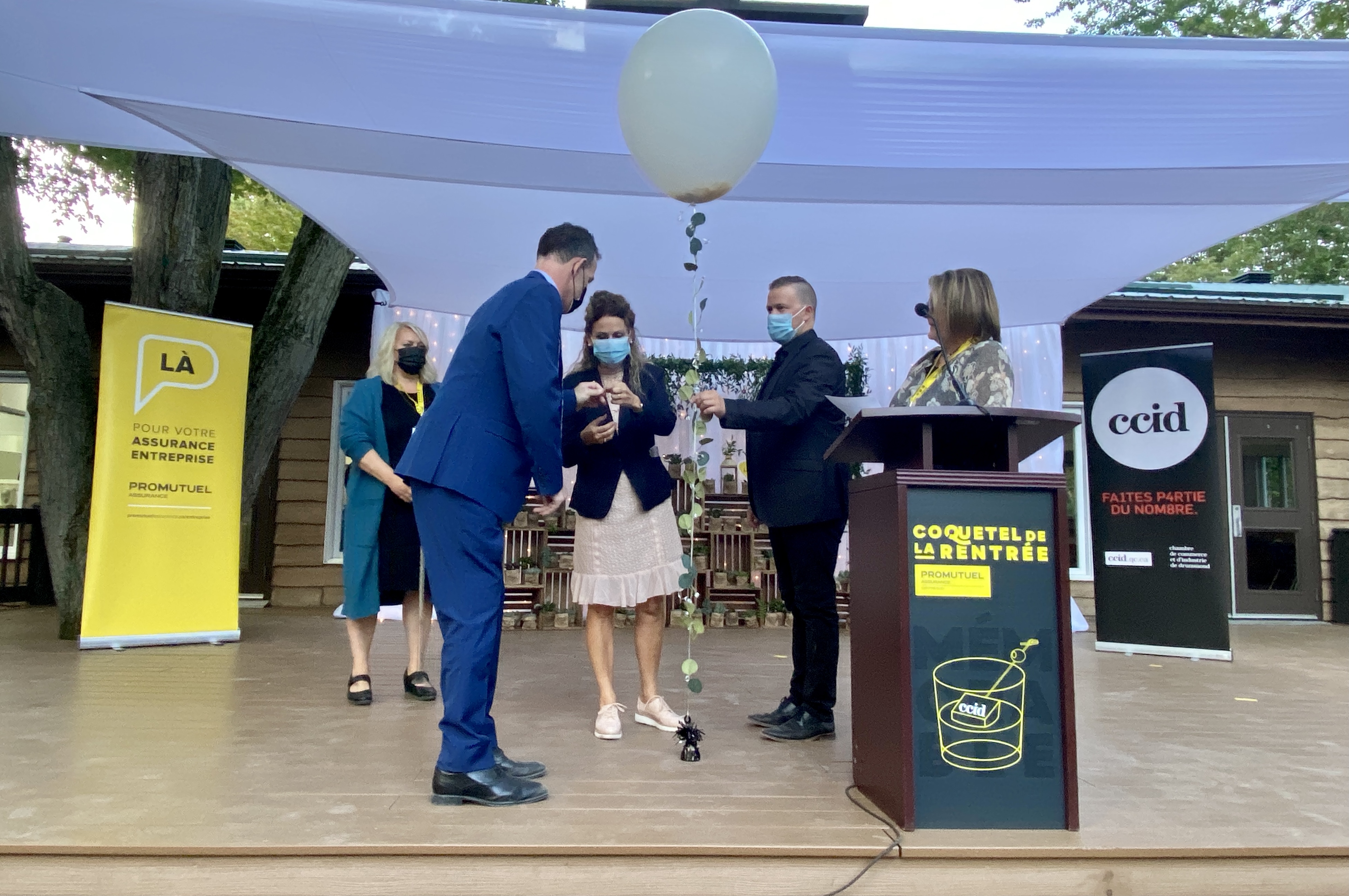 “THERE to get back to business” was the theme for the Drummond Chamber of Commerce and Industry Promutuel Insurance Centre-Sud fall reception. As Ms. Romanesky said, “This fall, we’re coming together with new hope as we take steps to get back to business as usual. Here we are at Centre Normand-Léveillé, a remarkable organization and our host for tonight, as a reminder that this is where victories are won and where people can overcome their limitations and be true to themselves, without judgment or barriers.” The Promutuel Insurance team handed each guest a succulent houseplant to take home as a reminder of the event. The plants were displayed on the Promutuel Insurance wall for all to see, as a backdrop to the event.
