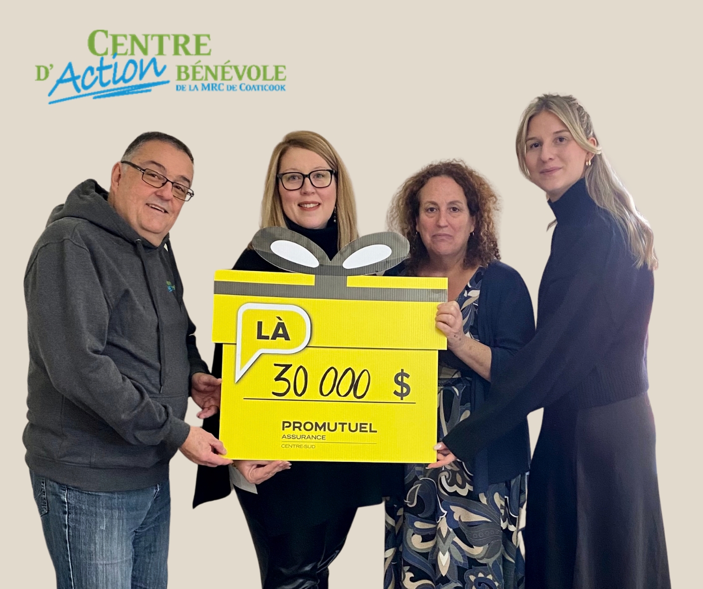 • Centre d’action bénévole de la MRC de Coaticook – 30 000 $.