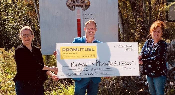 Promutuel Assurance Vallée de l'Outaouais a eu récemment le plaisir de remettre 5000 $ à la Résidence Le Monarque, une maison de soins palliatifs, afin de contribuer à la réalisation de son projet de construction d'une nouvelle résidence. Par son cadre familial, chaleureux et paisible, cet organisme accueille et accompagne les personnes en fin de vie et leurs proches avec dignité et sérénité. Il se distingue par la qualité de ses soins palliatifs ainsi que son exemplaire accompagnement médical, psychologique et spirituel.