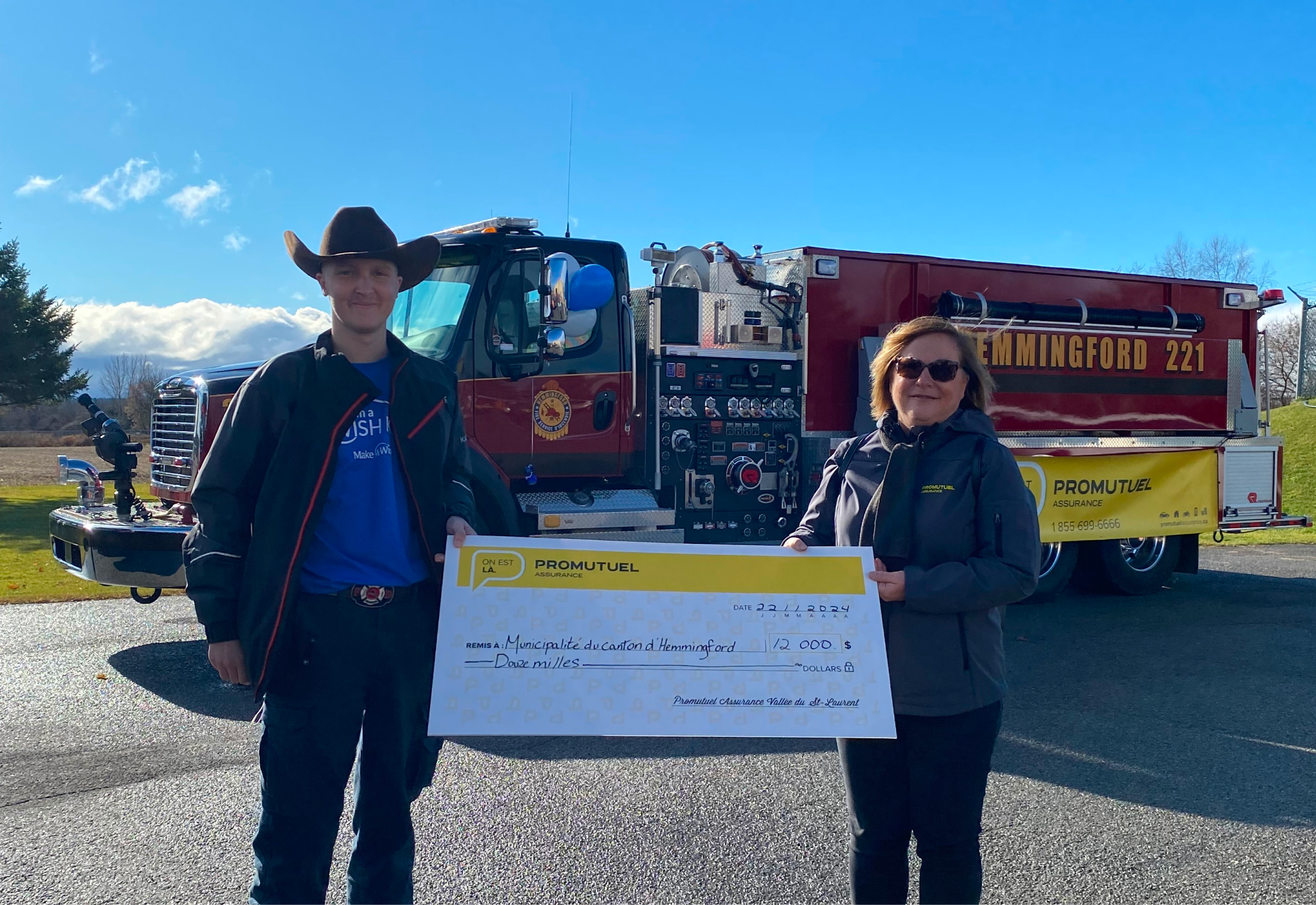 Sur la photo, Gerry, à gauche, et Martine Pelletier, conseillère en communication et marketing chez Promutuel Assurance du St-Laurent aux Appalaches, à droite.