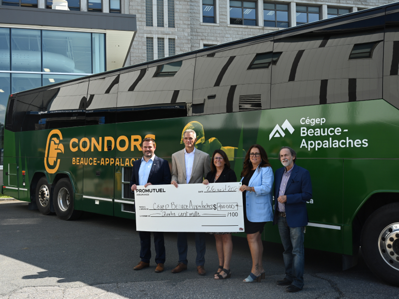 Le Cégep Beauce-Appalaches a annoncé un partenariat majeur avec notre société mutuelle, fondé sur nos valeurs partagées d’entraide. En plus d’assurer le transport des athlètes des Condors et de la communauté étudiante pour certaines sorties pédagogiques, notre société mutuelle aura l’honneur de remettre une bourse lors du Gala reconnaissance pour souligner l'implication étudiante.