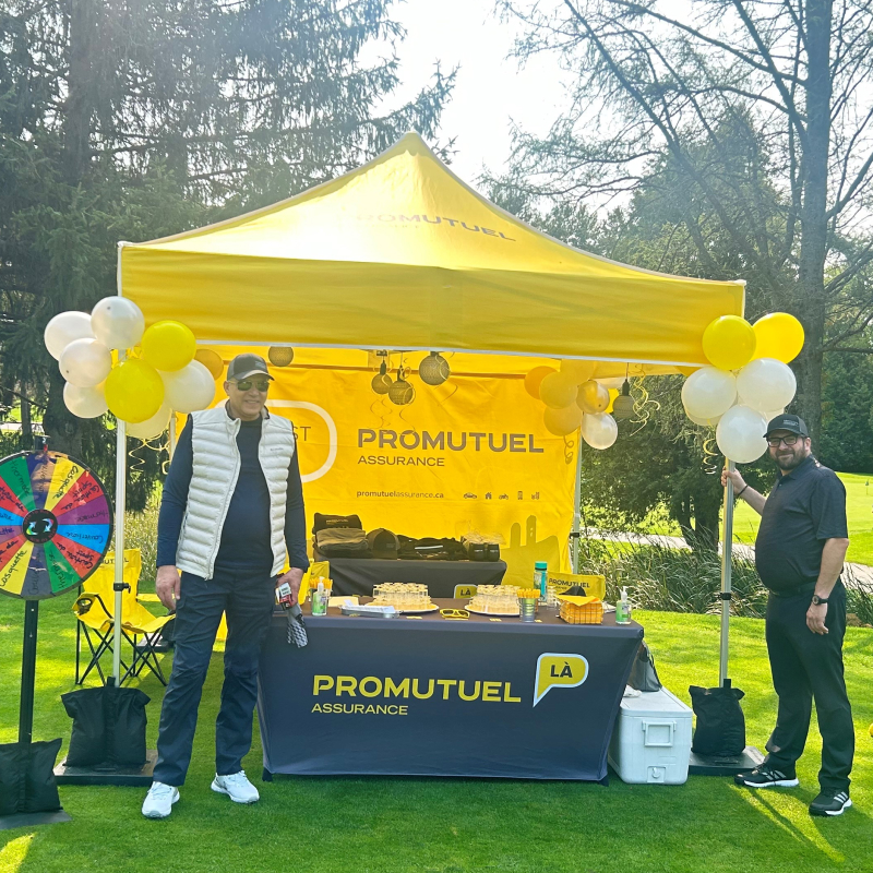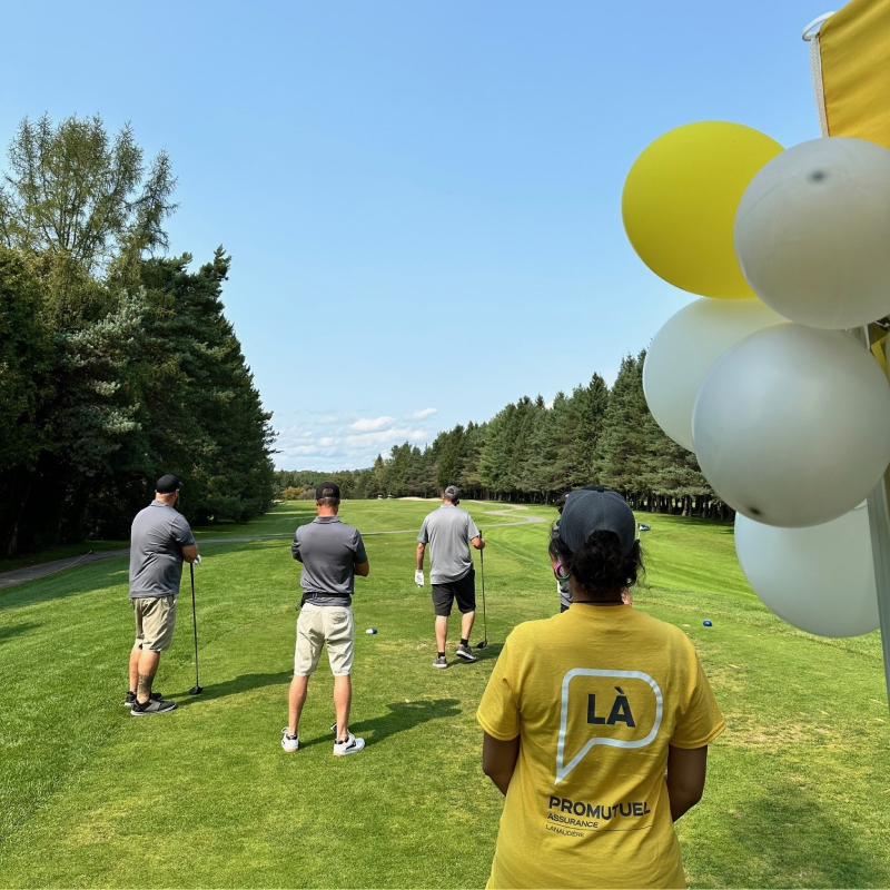 Nous étions sur place pour représenter fièrement notre société mutuelle qui était commanditaire exclusif de l’événement. En plus de participer au tournoi parmi les 59 quatuors inscrits, nous avions chapiteau sur le parcours avec roue chanceuse et cadeaux.