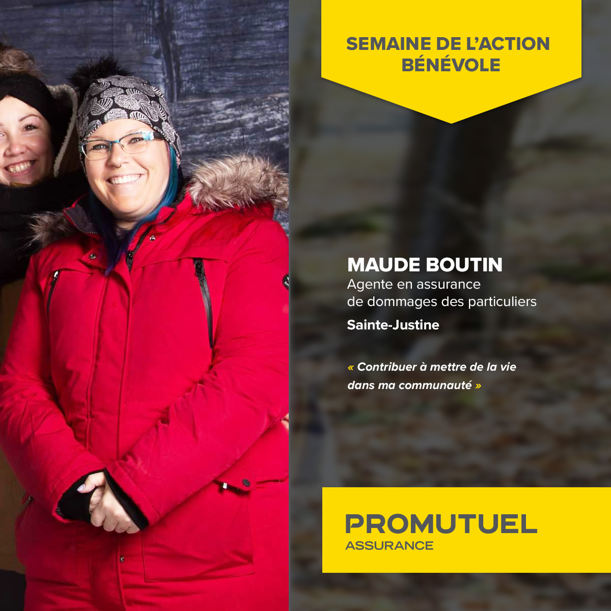 • Maude s’implique dans sa communauté par l’entremise de l’OTJ de Saint-Léon-de-Standon et de la maison des jeunes Stan-Jeunes.